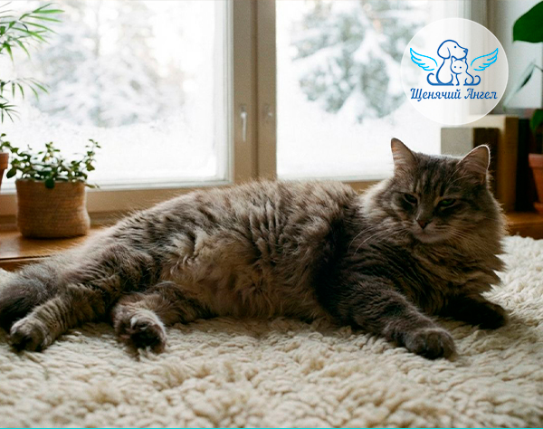 Зимой у домашних кошек часто совпадает сразу несколько факторов: