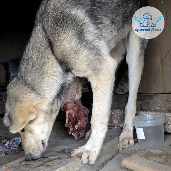 Дагестан. Бездомная Дымка получила тяжелую травму: то, что осталось от лапы, превратилось в очаг инфекции, который отравляет весь организм и без срочного вмешательства собаке грозит сепсис и гибель 💔🥺.