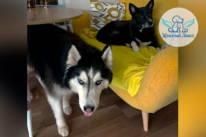 (История Ланы 🐕) Друзья, Ланочка передаёт привет! Теперь у неё появился друг Максим – большой аляскинский хаски, серьёзный и голубоглазый пёсель 🐕🦺. На его фоне