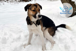 (История Джоли 🐶) Наша выпускница Бася отправилась на свою первую прогулку по заснеженному лесу ❄️🌲. Снег хрустит под лапками 🐾, вокруг столько запахов, а рядом