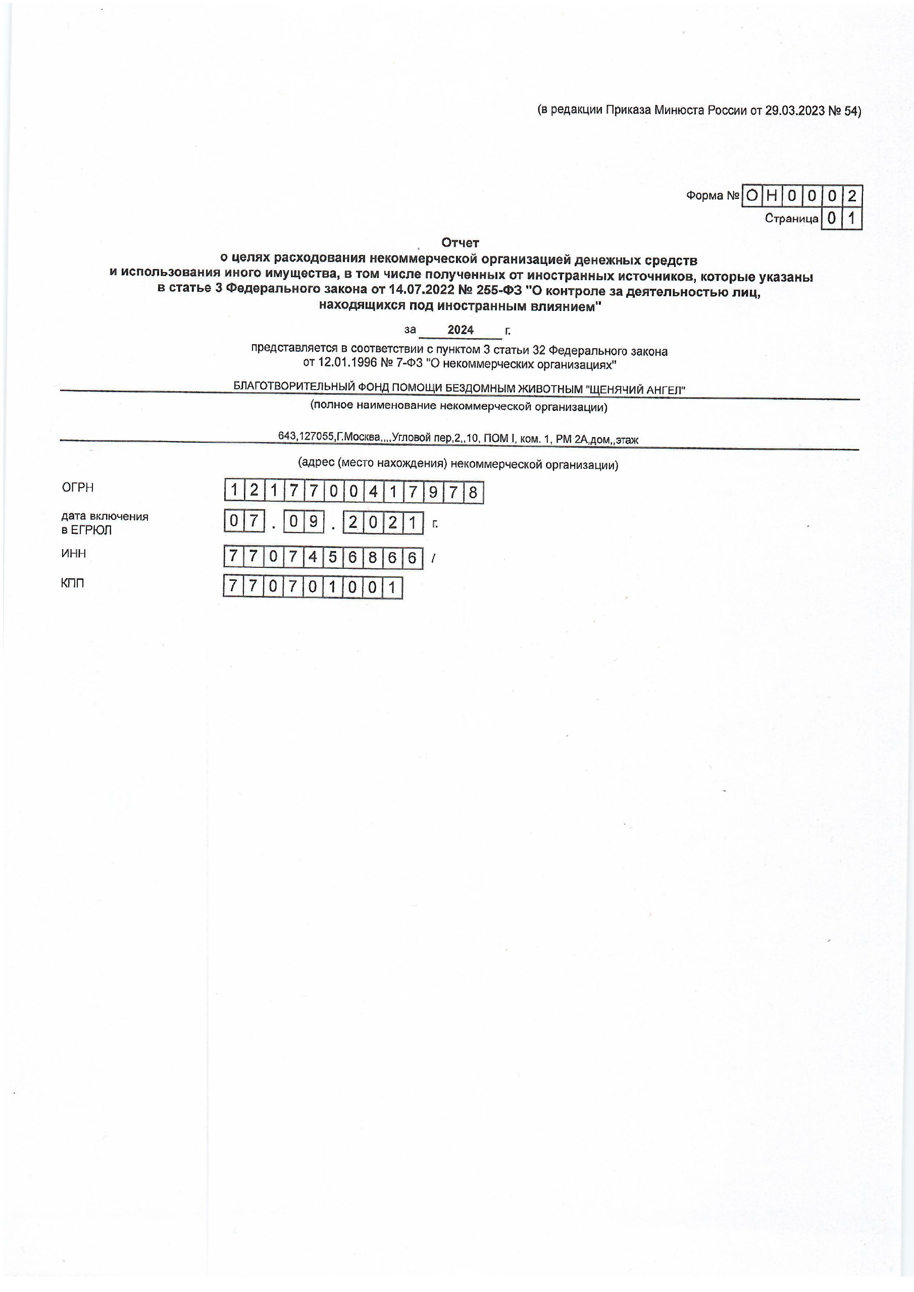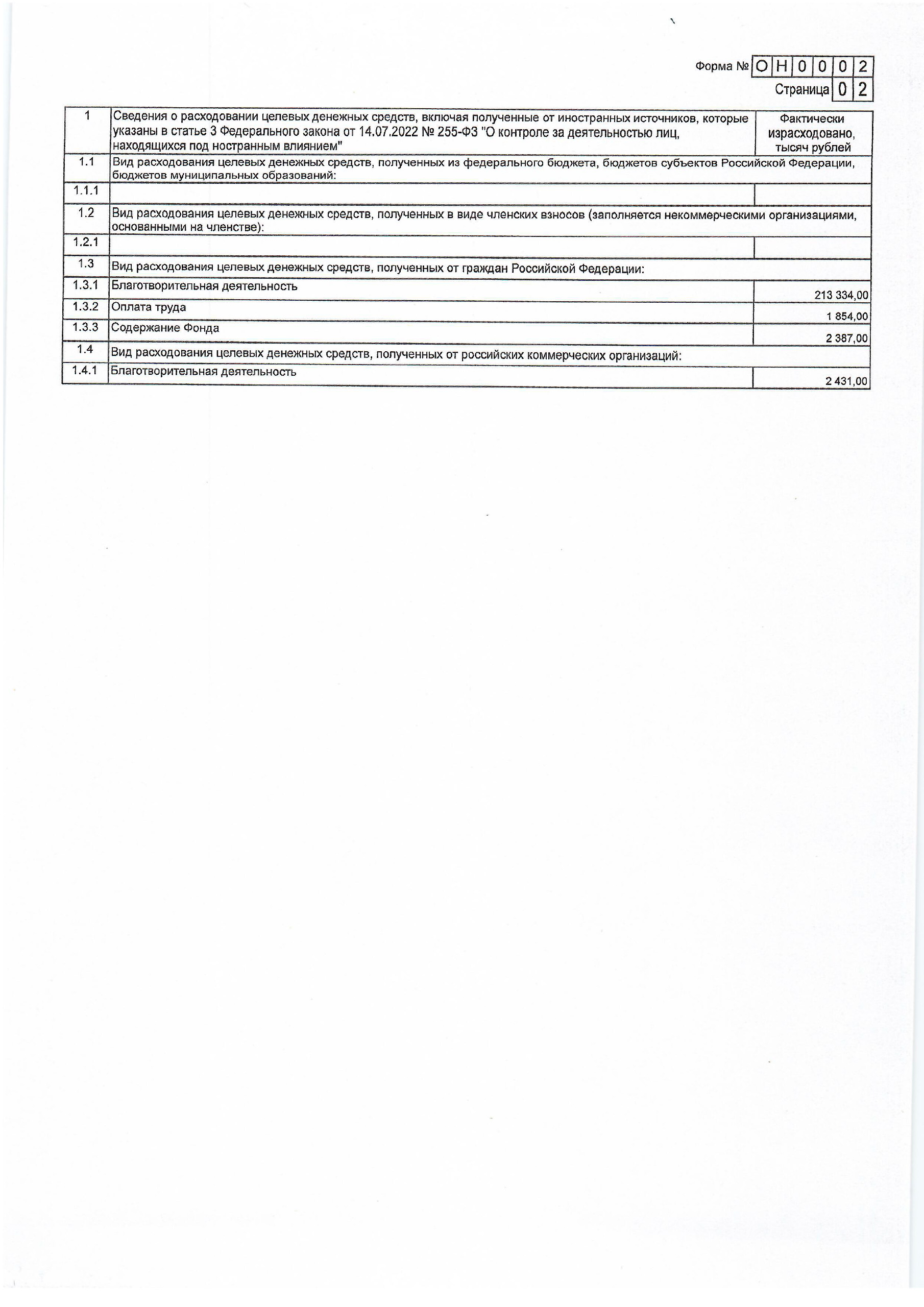 Отчет о целях расходования некоммерческой организацией денежных средств