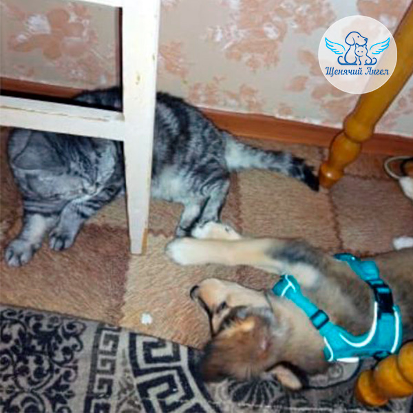 Ещё Клаус подружился с котом, осваивает поводок и с каждым днём становится всё смелее и увереннее.