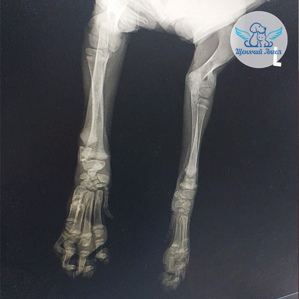 Первым делом мы показали шенулю хирургу и провели обследование 🩻. К сожалению, рентген подтвердил застарелую травму, которая привела к параличу лучевого нерва. Глубокая болевая чувствительность в лапке утрачена 😔.